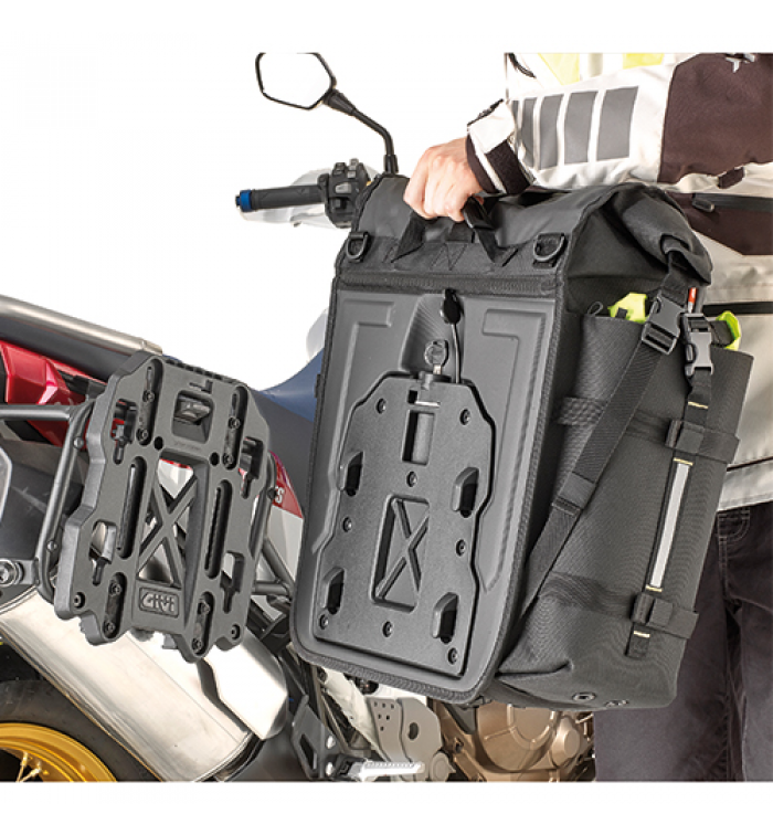 Pair of side bags, 35 + 35 ltr Designed for Enduro and off-road motorcycles. Quick release UNIFIT from the mounts, with GIVI Security Locks (can be keyed the same as the top-case, trolley base or the toolbox using the SL102, SL103 or SL105 kits).