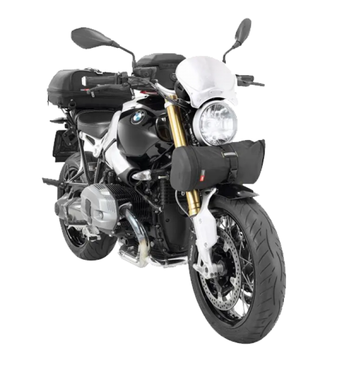 The bag can be attached to the motorcycle in the following ways: Front Fork, the Tail or combined with MT502 Saddle Bag