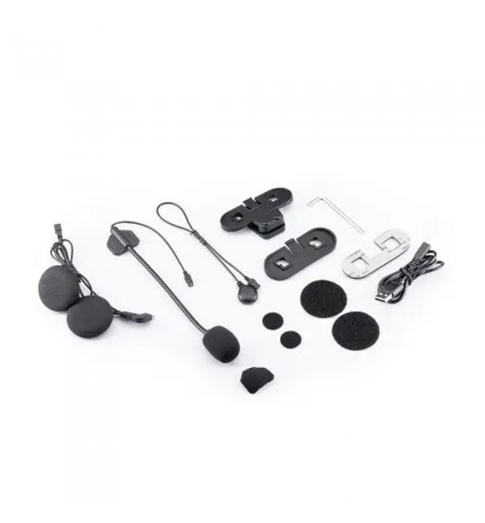 The standard accessories allow it to be mounted on any type of helmet. Intended for a target of motorcyclists and scooter riders who move mainly in the metropolitan area or for a couple of trips out of town on the weekend.